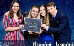 Samozřejmostí je bohatá sada rekvizit: brýle, párty klobouky, pusinky a knírky na špejli, vtipné cedulky s nápisy a spousta dalších vychytávek, které rozproudí atmosféru.